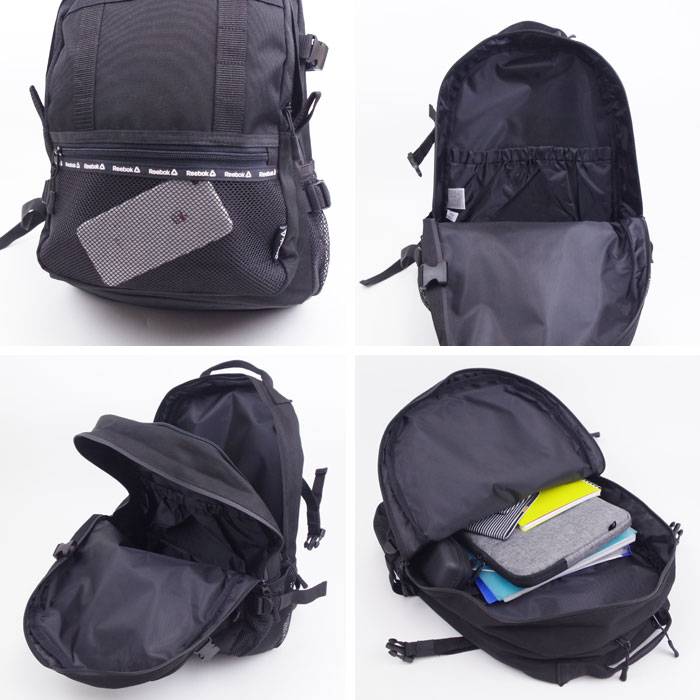 ポイント10倍 Reebok リーボック リュック メンズ 撥水 防水 バックパック レディース ブランド デイパック おしゃれ 大容量 A4 スクエア 四角 通学 通勤 人気 アウトドア トラベルバッグ 旅行 キャンプ サイドファスナー 背面 メッシュ 黒 ARB1019 outfit