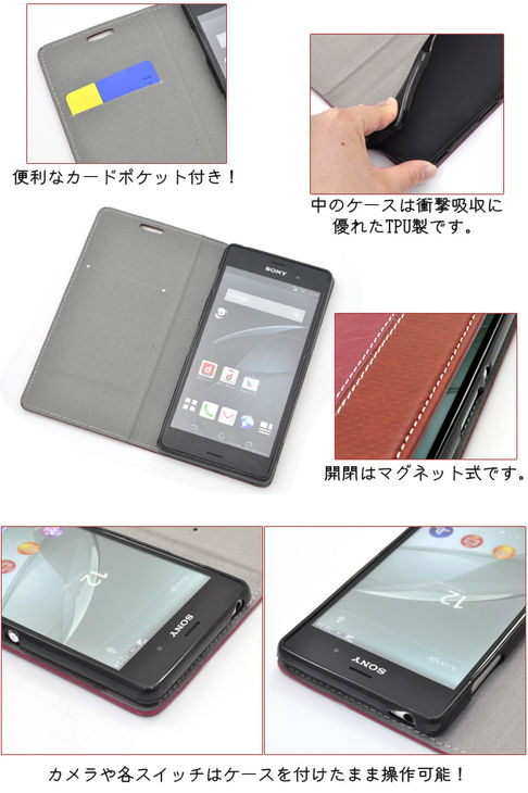生産地: 中国 成分・材質: 対応機種 Xperia Z3(SOL26/SO-01G/401SO) カラー レッド、ブルー、シルバー、ピンク、ホワイト、 パープル、ブラウン、ブラック、グレー 素材 合皮(PUレザー)/TPU 注意事項 ※本製品はマグネットを使用しておりますのでクレジットカードなどの 磁気カードの収納は避け、カードの注意事項をよくご確認の上ご使用ください。